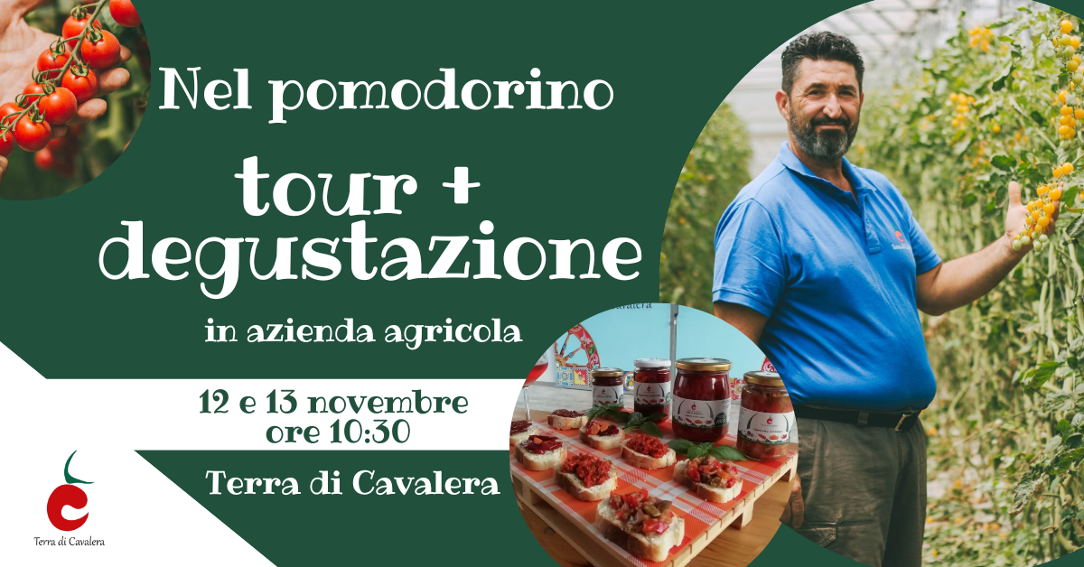 Siamo in raccolta, e v’invitiamo a fare un giro tra i campi di pomodorino + una degustazione delle nostre lavorazioni artigianali.