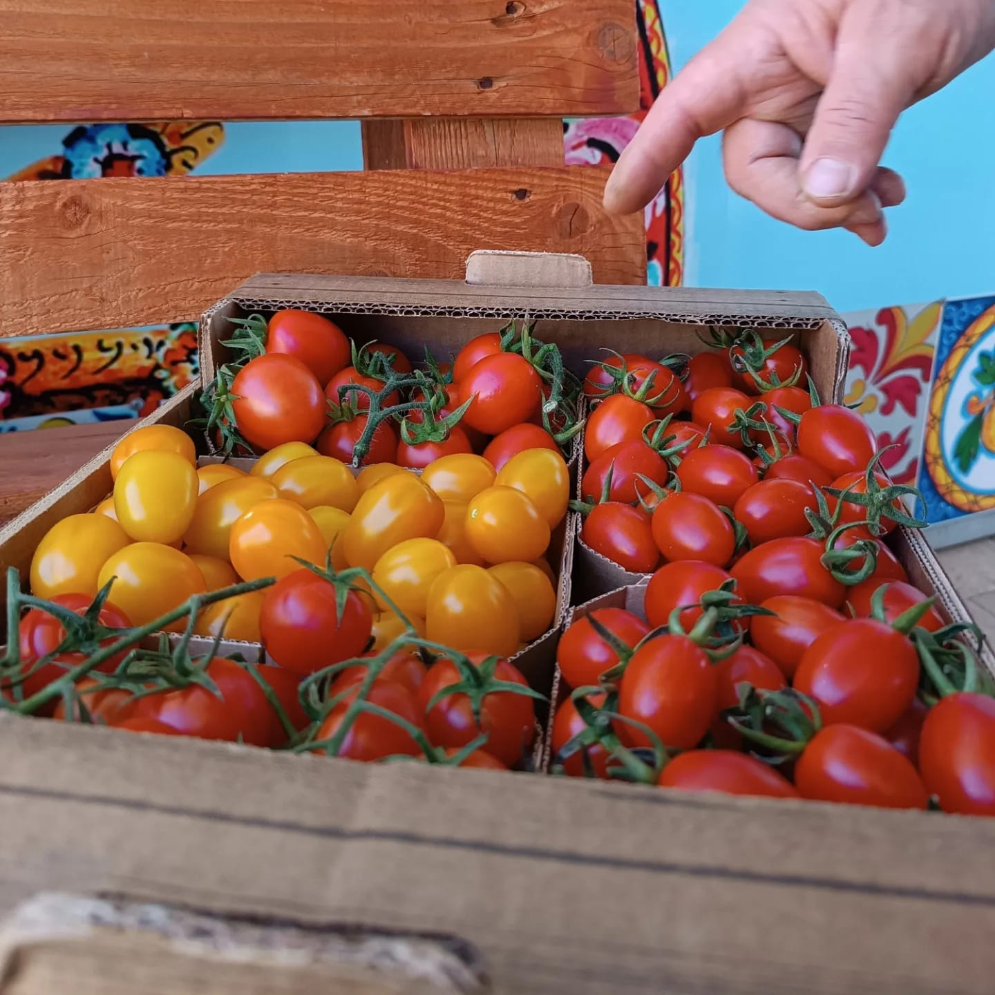 Una cassetta mista di pomodorini, con il meglio del raccolto.